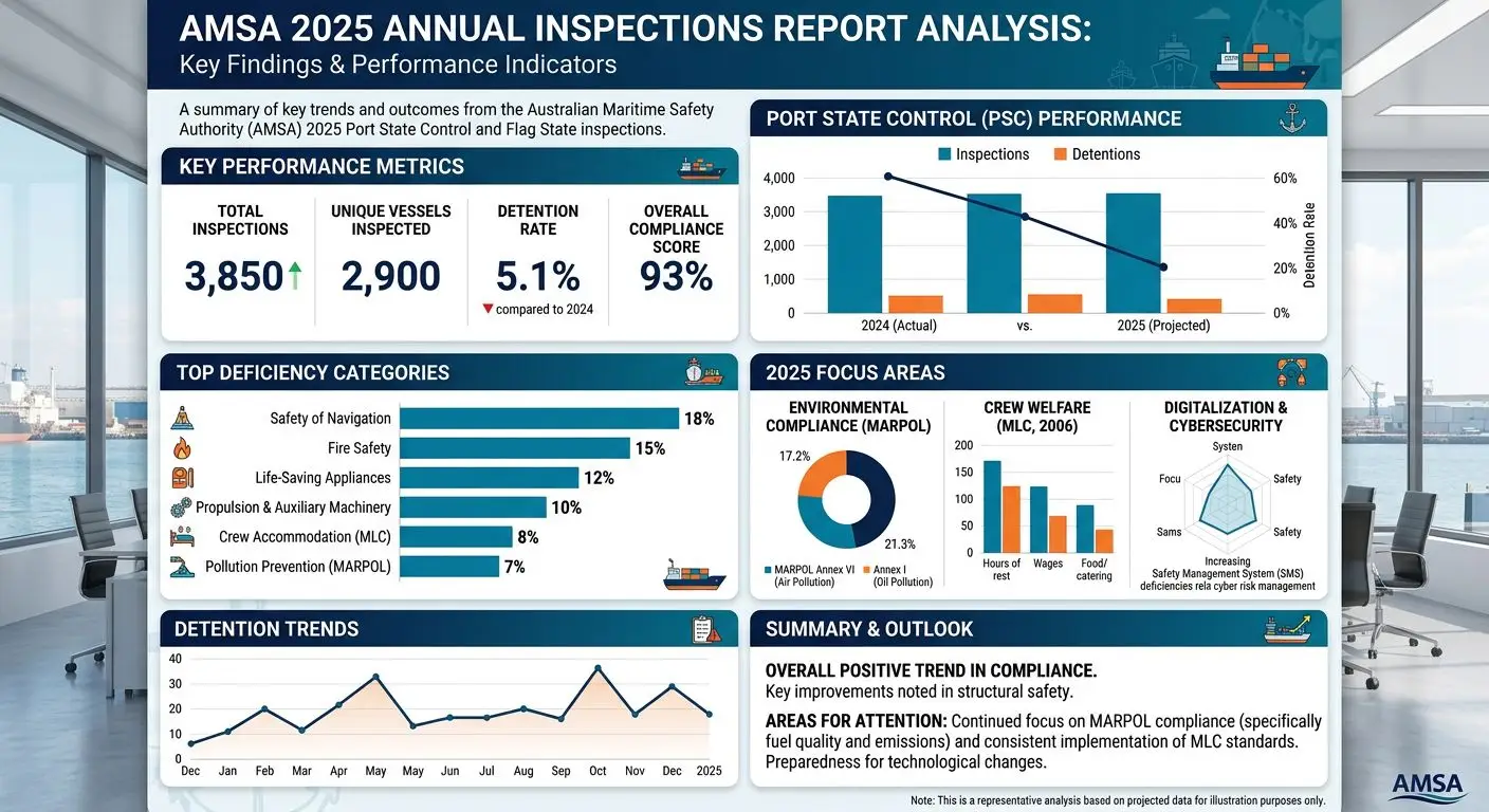 The Australian Maritime Safety Authority (AMSA) has released its 2025 Annual Inspections Report, providing a rigorous, data-driven analysis of maritime safety, seafarer welfare, and environmental protection within Australian waters. As a statutory authority, AMSA enforces both national and international maritime laws to ensure that trade remains safe and compliant.