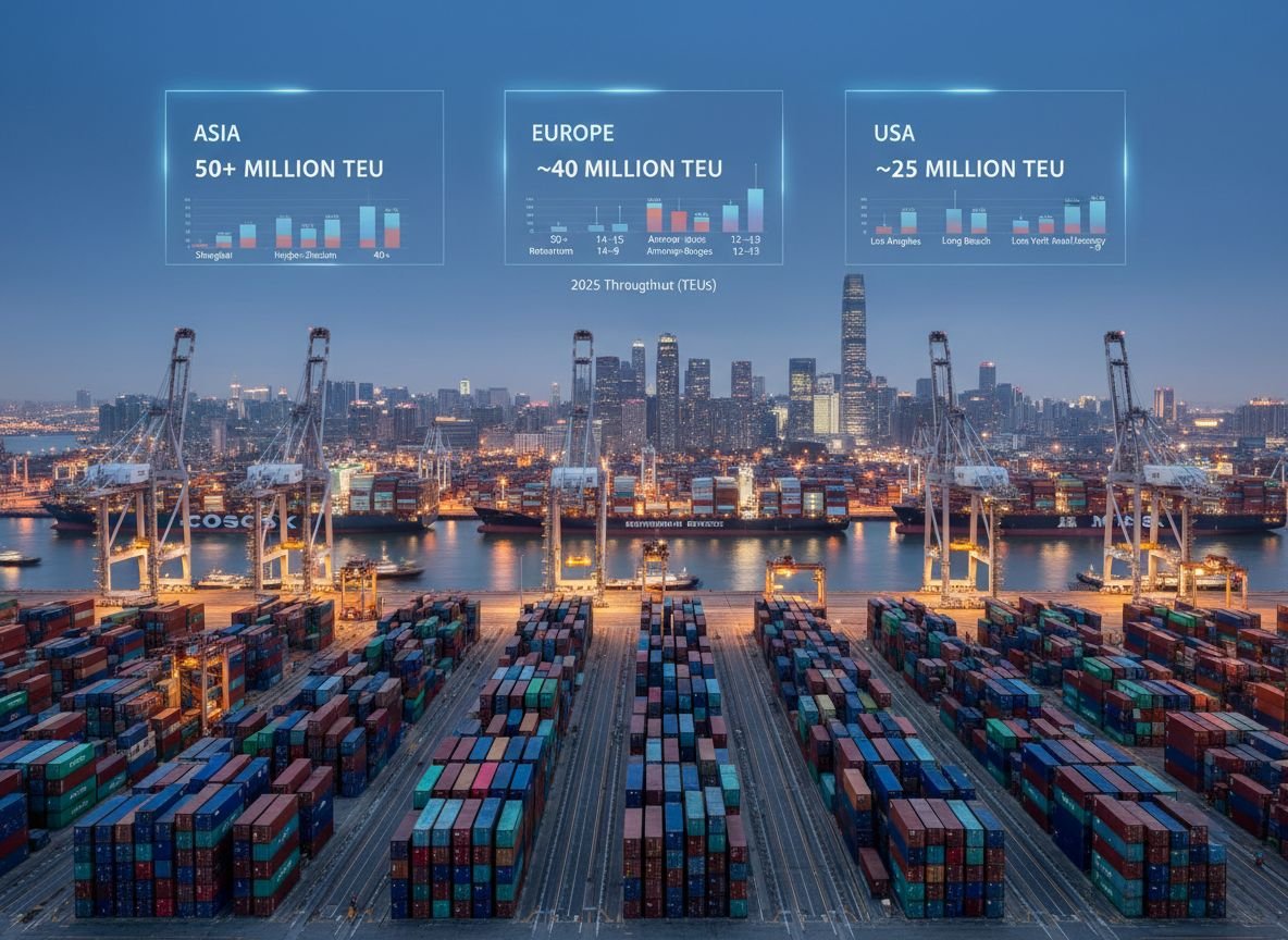 - Scale: Shanghai and Ningbo-Zhoushan each handle more containers than any single European or American port—often by a factor of 3–5.