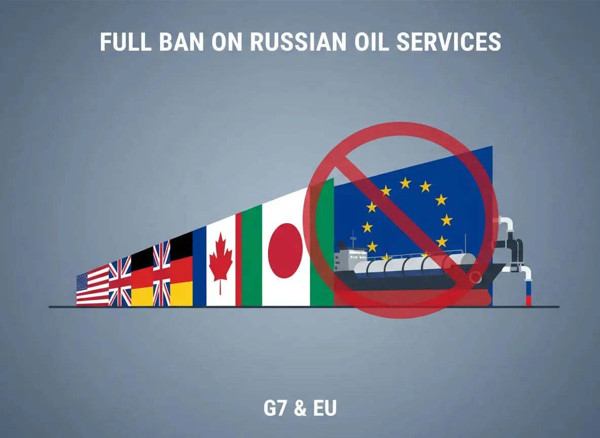 - The Group of Seven (G7) and the European Union (EU) are contemplating a full ban on maritime services for Russian oil.